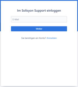 Gehen Sie hierfür auf die Seite https://solisyon.atlassian.net/servicedesk/customer/portals und geben Sie Ihre E-Mail-Adresse in das entsprechende Feld ein und klicken auf „weiter“: