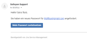 Sollten Sie Ihr Passwort vergessen haben, gehen Sie auf die Seite https://solisyon.atlassian.net/servicedesk/customer/portals und geben Sie Ihre hinterlegte E-Mail-Adresse ein und klicken Sie auf „Weiter“:
