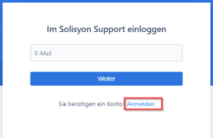 Klicken Sie hierfür auf der Startseite (https://solisyon.atlassian.net/servicedesk/customer/portals) auf den Link „Sie benötigen ein Konto? Anmelden“: