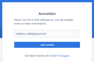 Geben Sie für den neuen Account Ihre E-Mailadresse an und klicken auf „Link senden“: