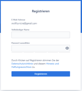 Hier können Sie nun Ihren Namen und Ihr persönliches Kennwort festlegen. Schließen Sie den Vorgang mit „Registrieren“ ab: